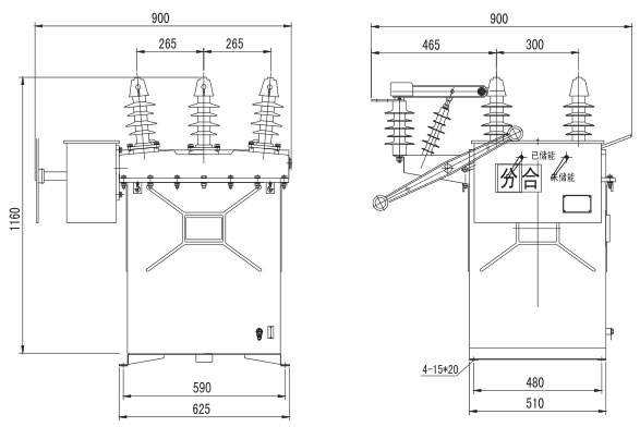 高压真空断路器为弹簧机构,机械闭锁,箱体内分为开关室、互感器室。互感器室内由两台干式电压互感器及两台干式电流互感器组成,电压互感器同时设置绕组做为断路器的分合闸机构的电源,其整体外形小巧、安装方便。电压互感器VN接线,电流互感器可制成多变比结构,以适应不同的负载需要。