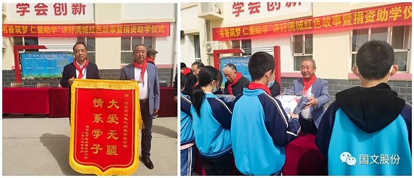 4月10日,意昂体育 科技有限公司党支部会同共建单位满城区老干部局(满城区关心下一代工作服务中心),来到满城区于家庄镇庞村小学开展“书香筑梦,仁爱助学”主题党日活动,为每一位小学生捐赠爱心书包。